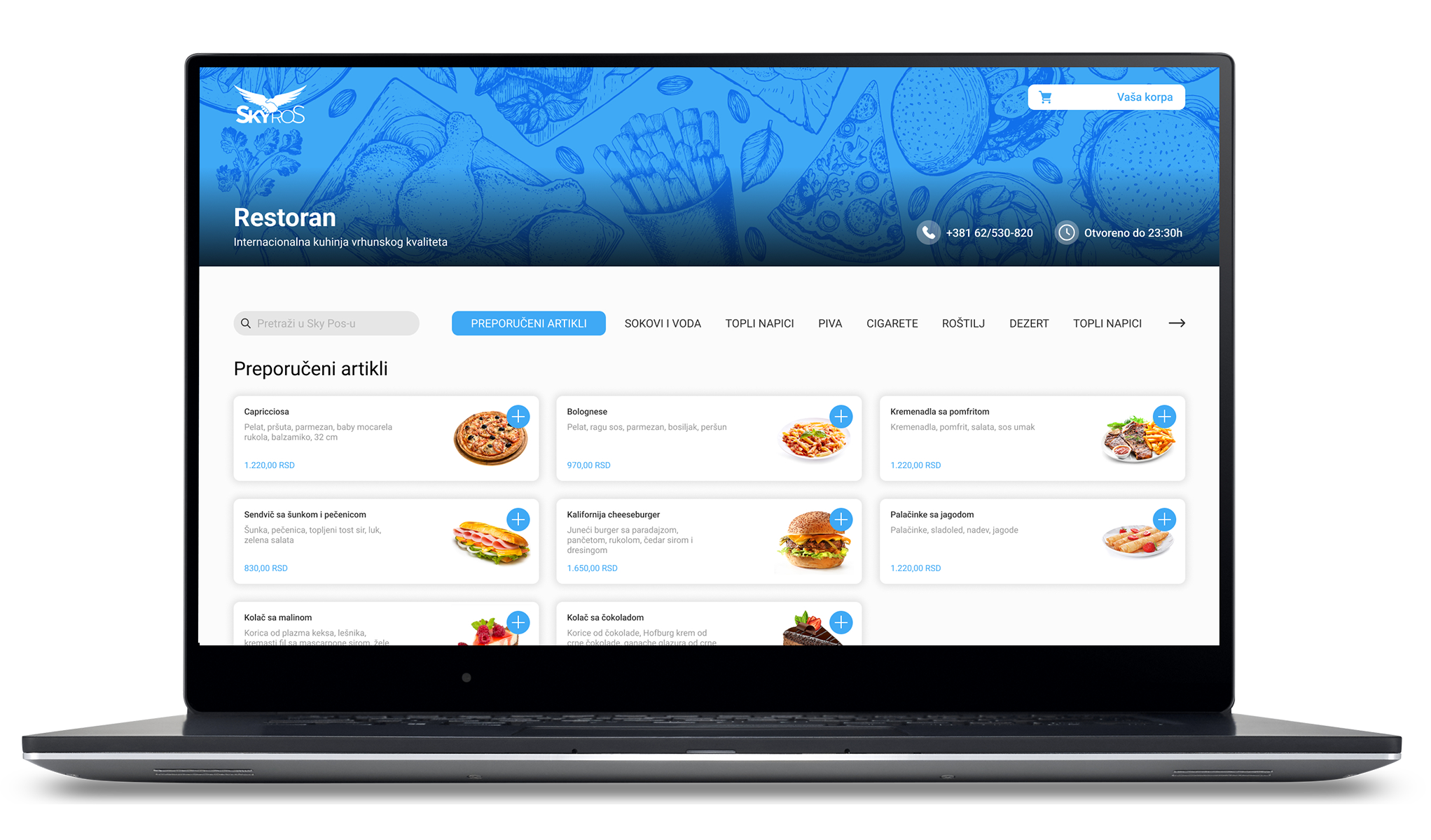 Dodatno, Sky ROS omogućava da u svakom trenutku imate jasan uvid u to koliko je čega poručeno, trendove prodaje, statistike, analize… Bukvalno sve što jednom ozbiljnom i modernom biznisu treba- Sky ROS poseduje.